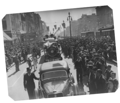 When the big day arrived, the train would roll into town, surrounded by huge crowds, bell clanging and whistle blowing. It would move slowly down the main street, accompanied by adoring movie fans. MGM had a deal with the local theater, and like the Pied Piper, the little train led fans right to the theater, where interviews were given and visiting MGM stars sometimes gave their support.